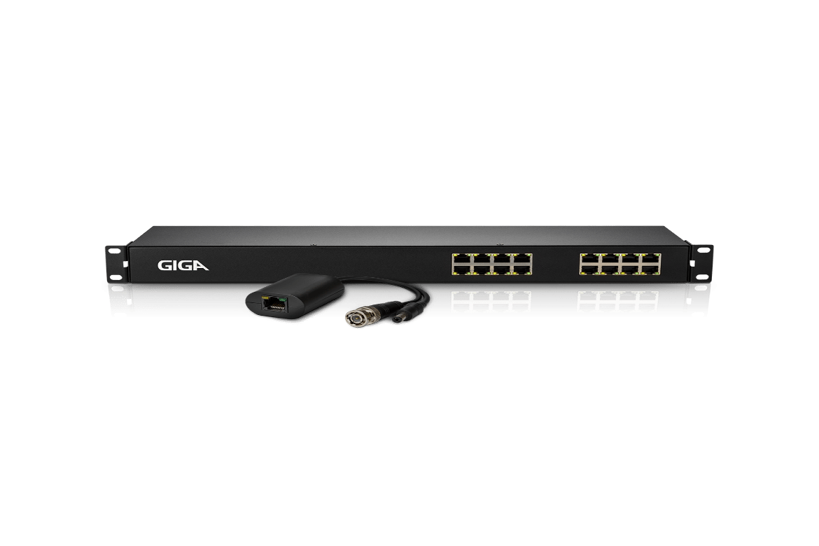 O produto já vem acompanhado de 16 baluns de vídeo e alimentação com conversor de impedância e proteção de surto de tensão, uma segurança a mais para as câmeras do sistema de CFTV. Os baluns também podem ser adquiridos separadamente.
