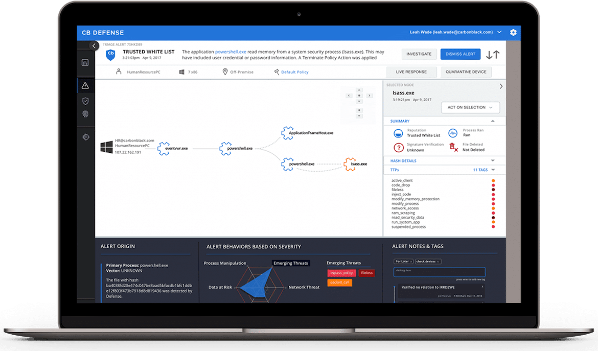A Carbon Black oferece prevenção, detecção, resposta, caça a ameaças e serviços gerenciados em uma única plataforma